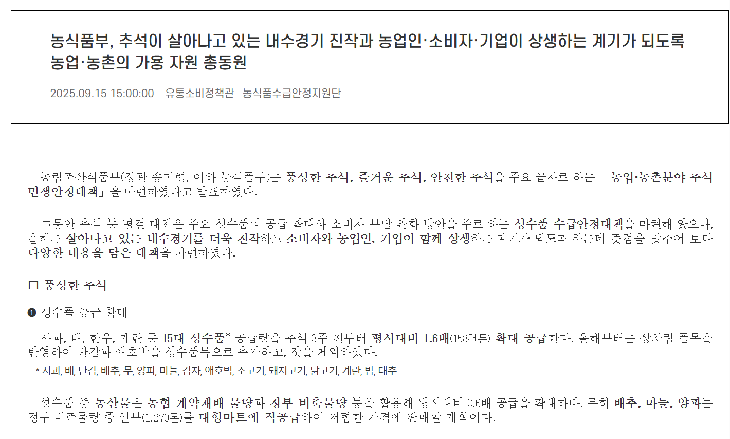 즉, 소비자는 생활비를 줄이고, 농민은 안정적으로 판매처를 확보할 수 있어 ‘윈-윈 정책’이라 불립니다.