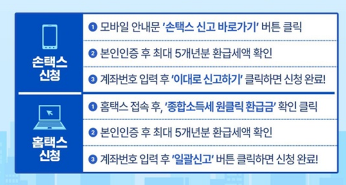 홈택스·손택스 접속 → 환급금 조회 → 대상 여부와 금액 확인 - 환급 계좌 등록 필수
