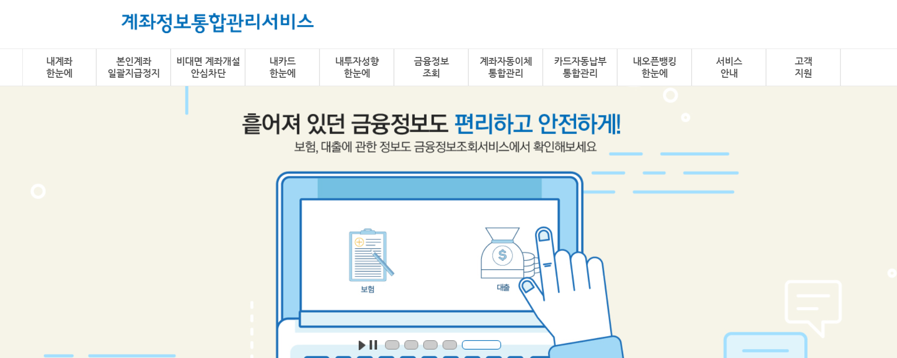 또 하나의 핵심 서비스는 어카운트인포(Account Info)입니다. 이는 계좌정보통합관리서비스로 불리며, 금융결제원이 운영합니다. 어카운트인포는 단순 조회에 그치지 않고, 실질적인 관리 기능까지 제공합니다.