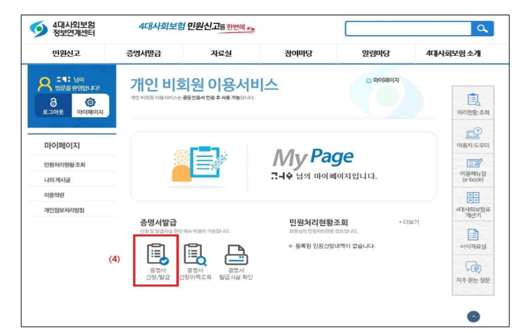 - [가입내역 확인서 발급] 메뉴 선택