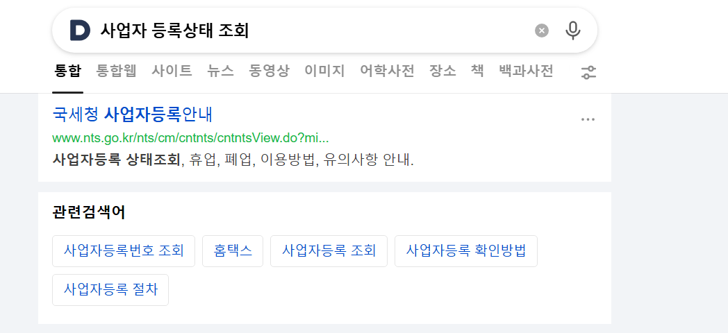 - 포털 검색창에서 “사업자등록 상태조회” 입력 → 홈택스 연결