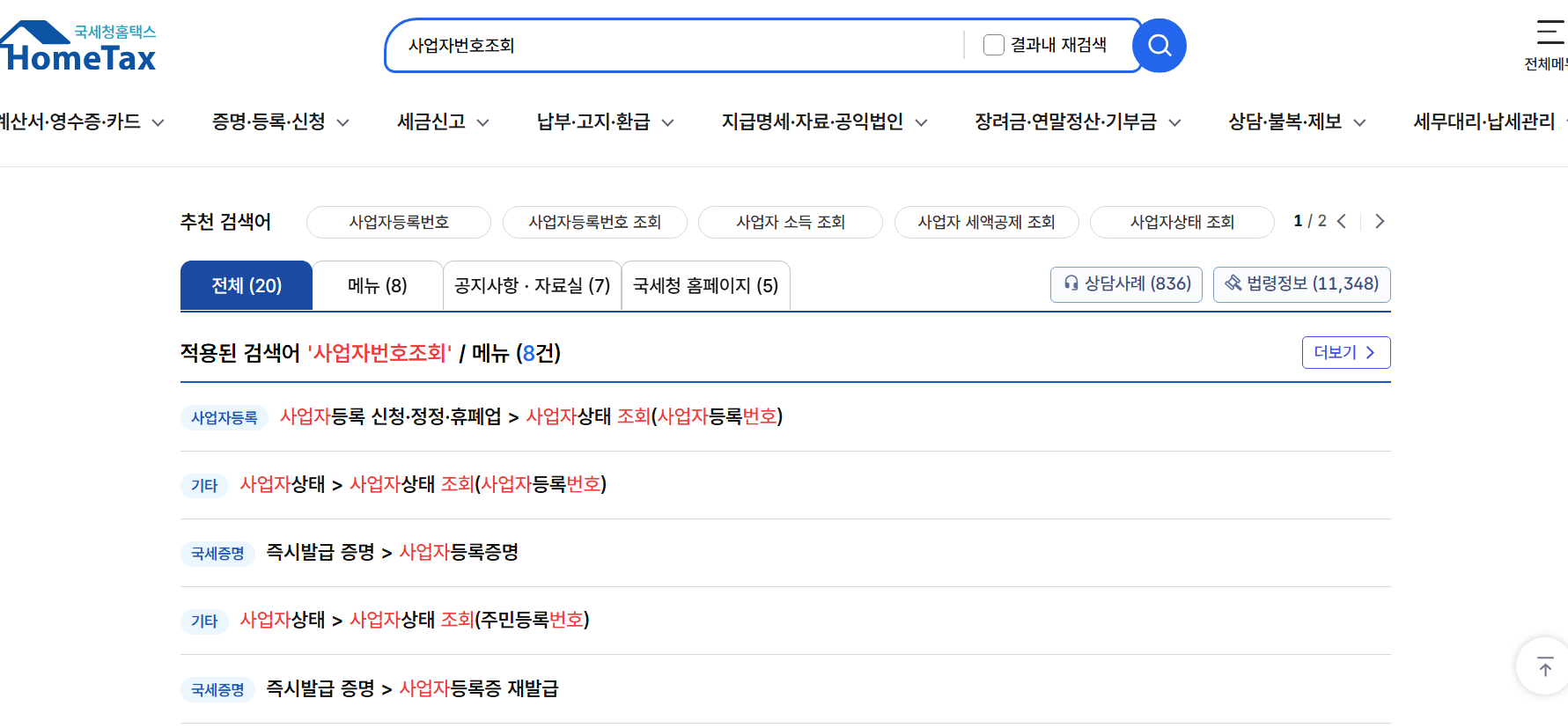 국세청 홈택스에서 사업자번호 조회하기