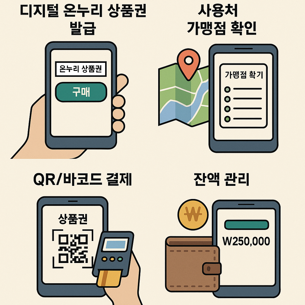 디지털 온누리 상품권 사용방법은 간편결제 앱을 통한 발급 → 가맹점 확인 → QR/바코드 결제 → 잔액 관리 단계로 정리됩니다. 할인 구매 혜택과 간편한 모바일 결제 시스템 덕분에, 전통시장을 자주 이용하는 소비자라면 생활비 절약과 지역경제 활성화에 동시에 기여할 수 있는 수단입니다.