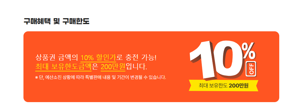 - 할인 혜택: 상시 10% (정부 예산 소진 시 종료 가능)