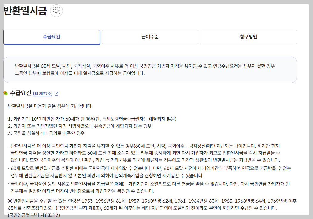1. 국민연금 일시금 제도란 무엇인가입니다